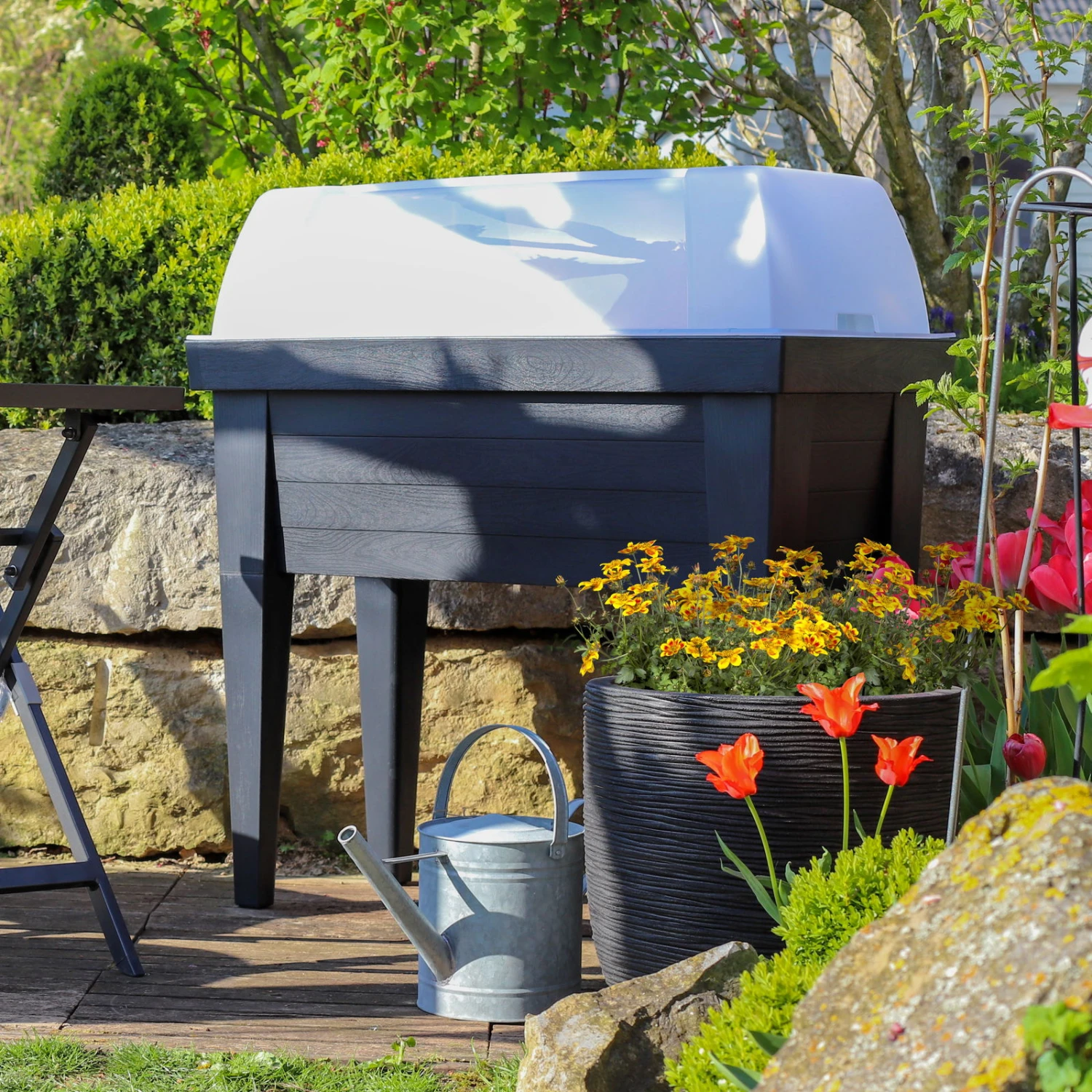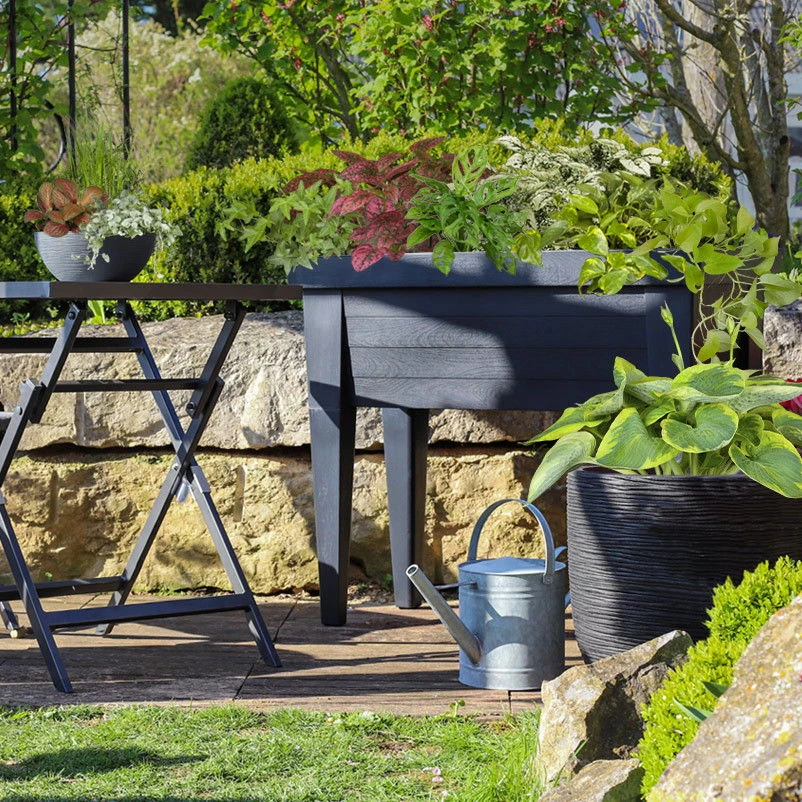Die ergonomische Arbeitsfläche des Hochbeets für den Garten, die Terrasse oder den Balkon erleichtert die Pflanzarbeiten und die Pflanzenpflege.