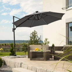 Schneider Sonnenschirm ‚Rhodos Blacklight‘, Mit LEDs, Anthrazit, Ø 300 Cm
