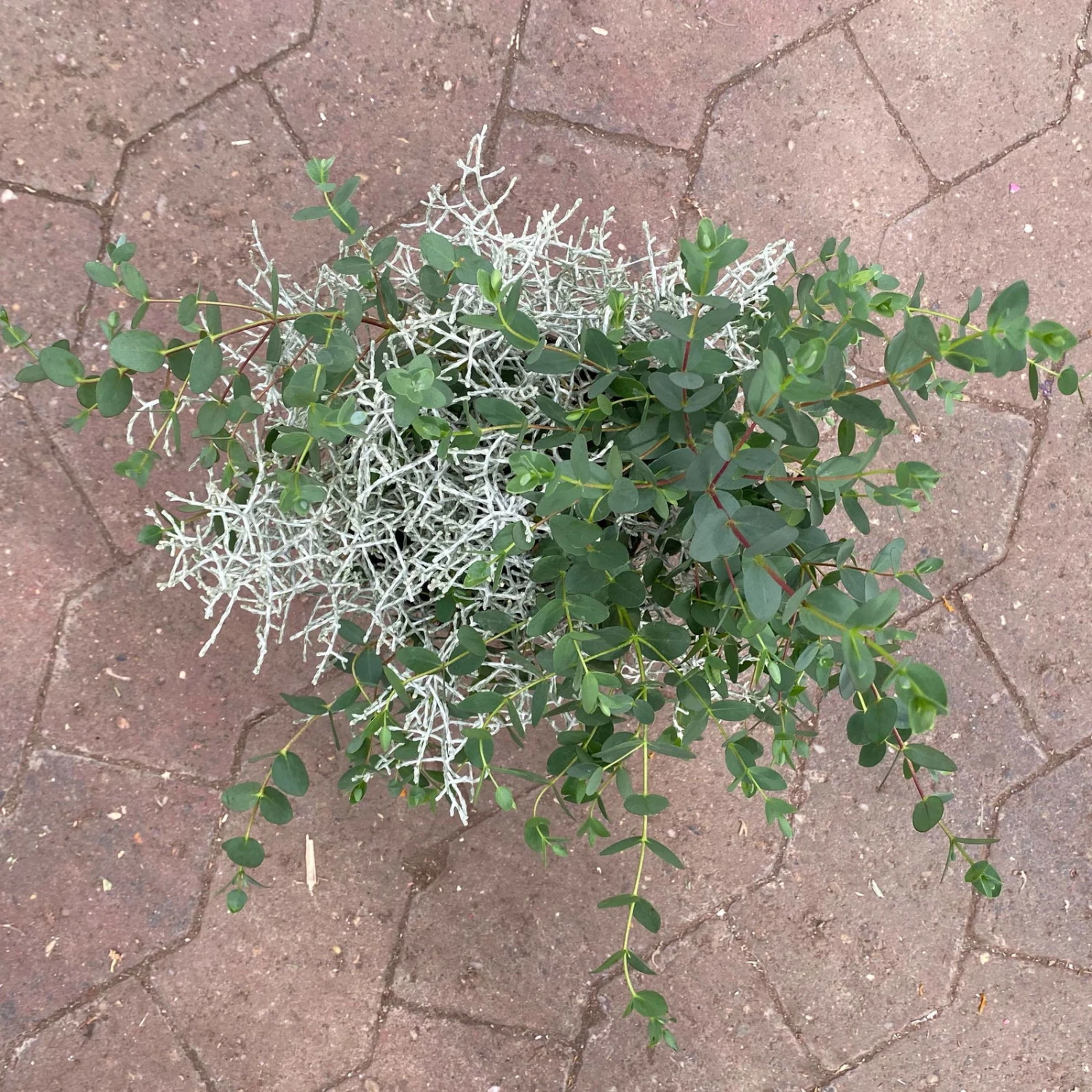 Eukalyptus und Silberdraht zusammen ergeben mit graugrünen Blättern und fast silberner, filigraner Struktur interessante Kontraste. Ob für sich alleine oder in Kombinationspflanzungen, das ansprechende Pflanzen-Duo überzeugt.
